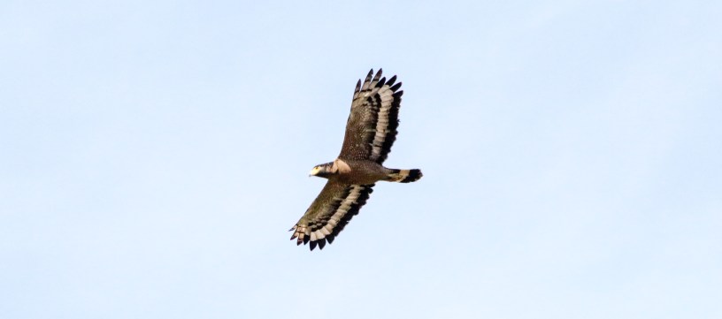 They were followed shortly by four Bushy-crested Hornbills. We then drove back to towards the boat jetty at Kuala Tahan. Our entry into the arch leading to Kuala Tahan was greeted by a Crested Serpent Eagle flying overhead. We also stopped to admire a Blue-crowned Hanging Parrot.