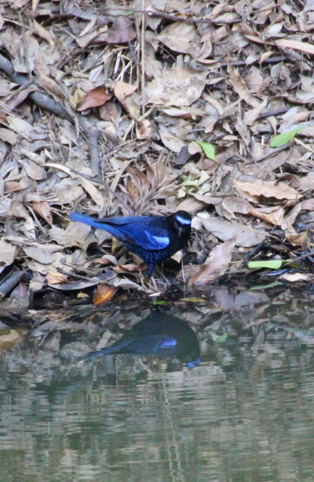 There is a small pond between the lawn and the large water tank. I have been lucky to see the Malabar Whistling Thrush on two occasions in it.