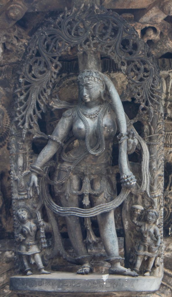 Ever since I had noticed them a couple of them in the pictures I had taken during the visit to the stunning Chennakesava temple at Belur (read here), and came to know that there are 42 of them adorning the temple, I just had to go back to see them. Such was the beauty and details in these sculptures. Remember that they were carved in stone! And go back I did; my wife and I made a trip to the temple in May for seeing them.