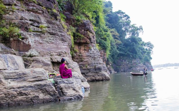 All around us, both on stationary boats as well as on the banks, we could see adults and children fishing. Here is a picture of a woman on the bank fishing.