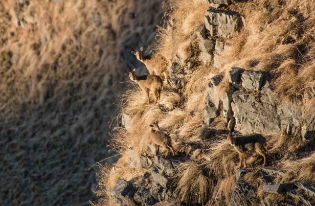 Here is a family of Himalayan Gorals seeing us seeing them πŸ˜‰ . They were so sure-footed on the slopes and were a sight to see!