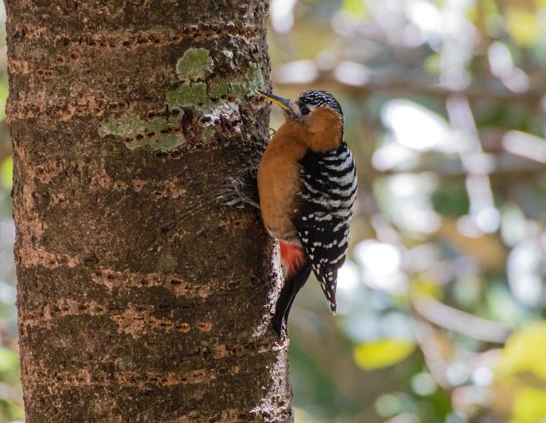 The Rufous-bellied Woodpecker is a nectar sucker. It was very interesting to see how it had made rows of holes on the entire tree trunk; you can see a part of it in the above picture. The tree was surely going to fall down at some point πŸ˜€ .