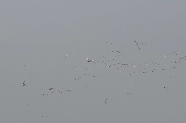 As we waited for Albin and Rahul to reach the boat so that we could go nearer to the sand bar, the entire flock took off. But we could still make out the Noddy in between the flock. Below is how it looked from afar.