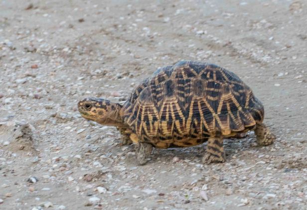 Another highlight of the evening was the sighting an Indian Star Tortoise slowly walking cross the mud road we were on. Check out the video later in this post to see it in action.