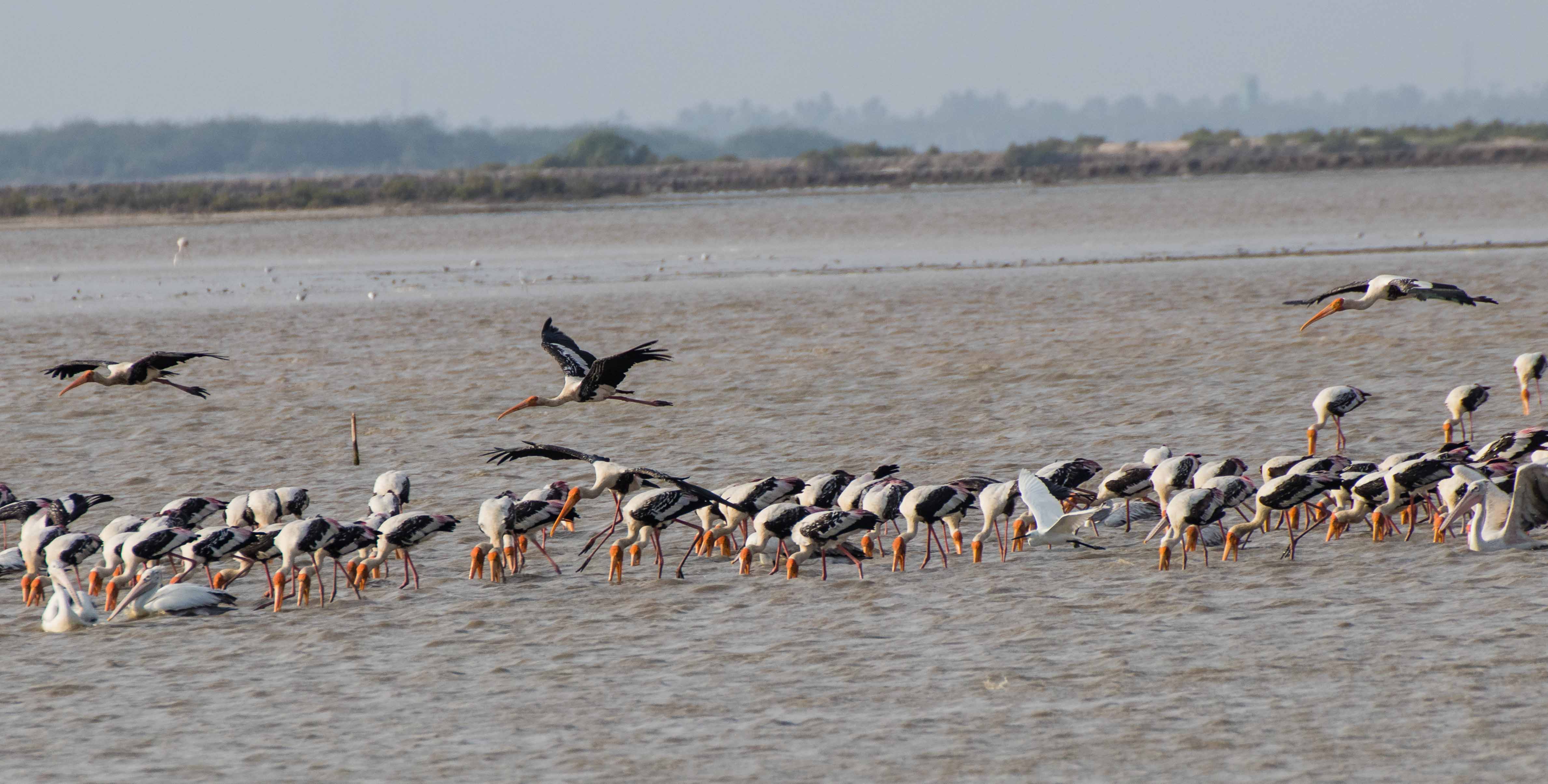 The next morning, we were accompanied by Dr. Balachandran, the Assistant Director of BNHS (Bombay Natural History Society). We were really lucky to have him along. Having been working in the area for decades to study birds, migration patterns etc., he knew the area like the back of his hand. The plan was to go the mudflats in the morning session, with the hope that we could get sightings.