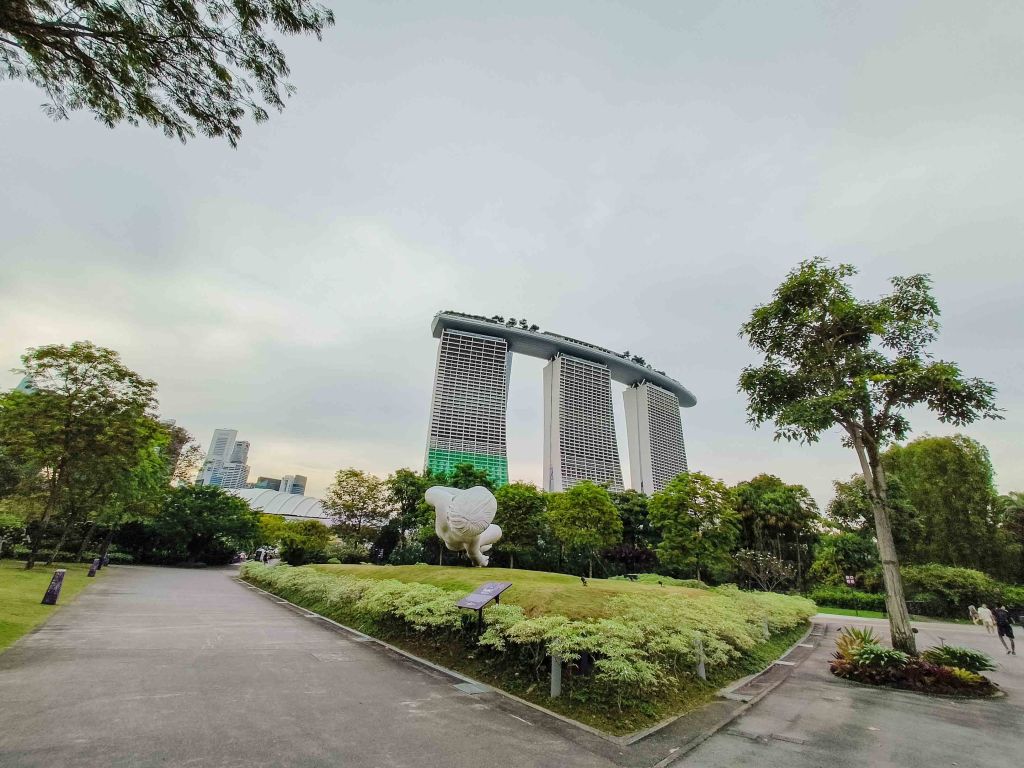 Here is an obstructed view of the iconic structure of the Marina Bay Sands resort as seen from the Merlion Park.