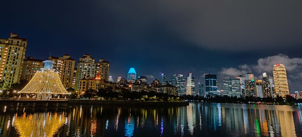 Before we called it a night and headed back, the last item was to see the laser and water show in the Marina Bay area. To see this we made our way to the Marina Bay Sands waterfront. Here is what the skyline looked like in the night: