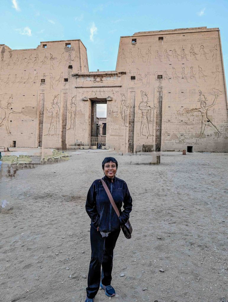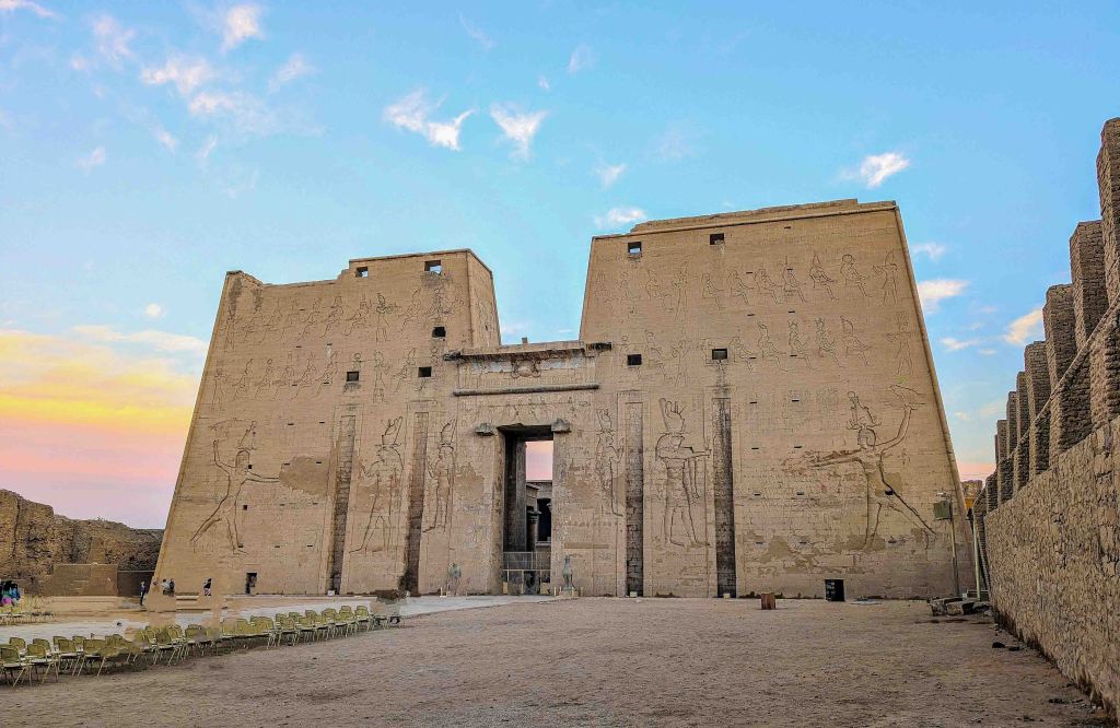 The boat sailed during the night and reached Edfu, further up the Nile. The early morning would be spent visiting the Temple of Edfu. The Temple of Edfu is the largest one dedicated to the falcon god Horus and goddess Hathor. And what a good experience we had that morning.