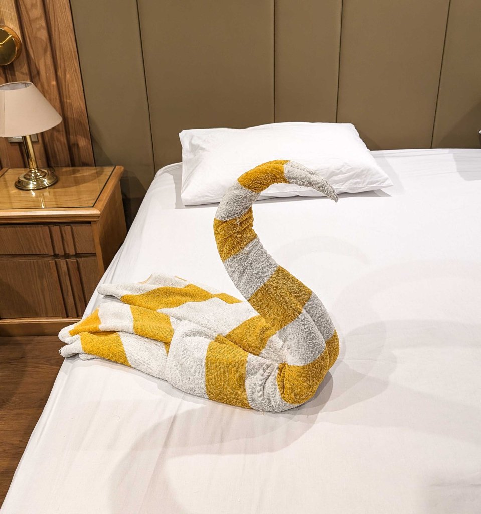 Every time we came back to our rooms after a local site visit, we would see that our rooms had been made. The towels would be shaped in some creature 😀.